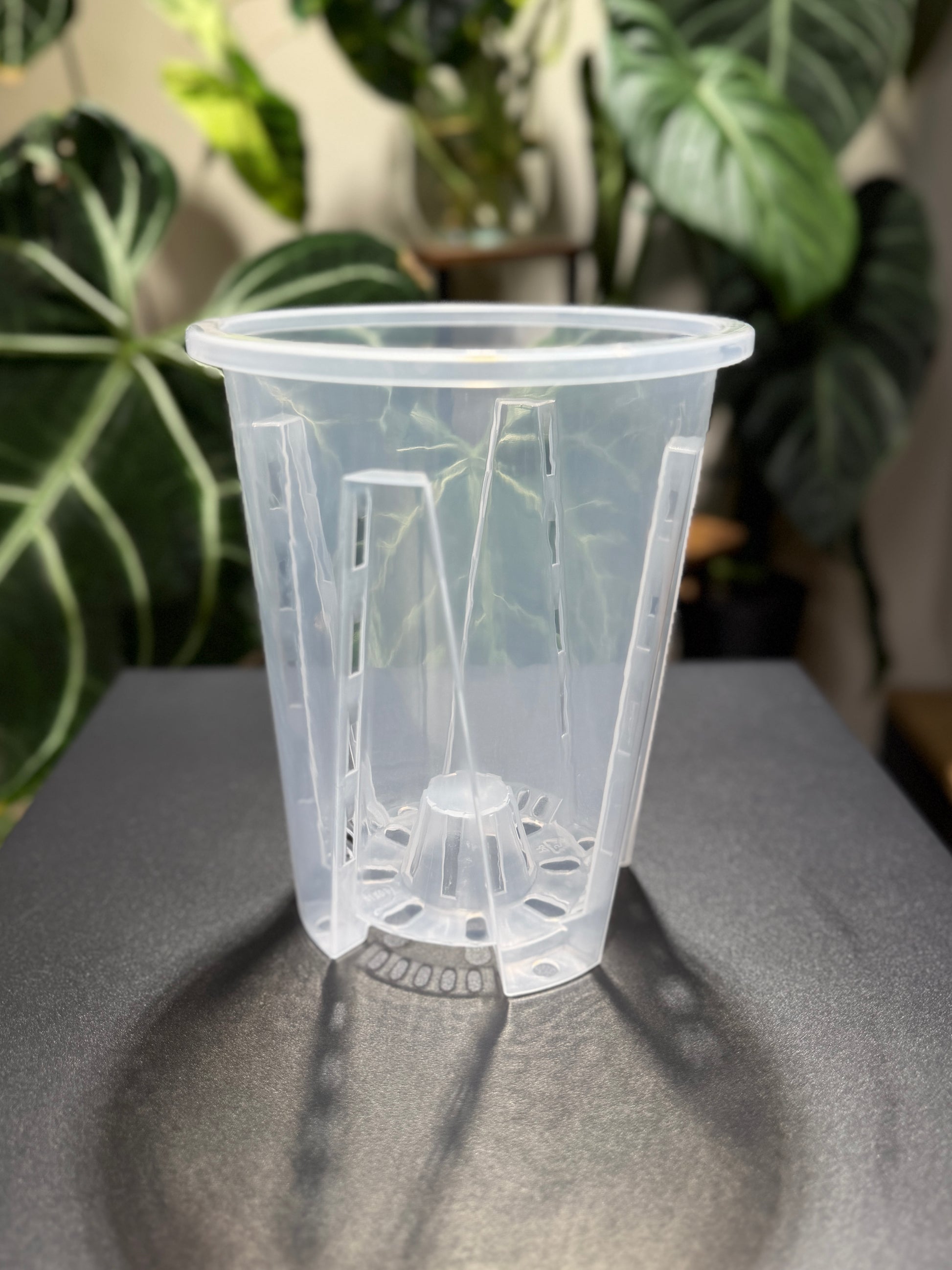 Das klare Material hat außerdem den Vorteil, dass man den Zustand der Wurzeln und die Feuchtigkeit im Substrat gut im Blick behalten kann – besonders hilfreich beim Gießen oder Umtopfen.